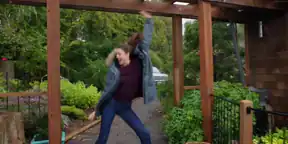Margaret Qualley happy dance